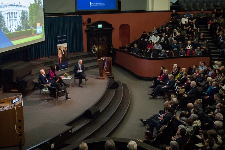 Wolff was speaking at U of T as part of the David Peterson Public Leadership Lecture Series, organized by the School of Public Policy & Governance. The talk, titled “Facts Stranger Than Fiction: Michael Wolff on Reporting From Inside the Trump White House,” was moderated by Peter Loewen, associate professor of political science and director of SPPG.