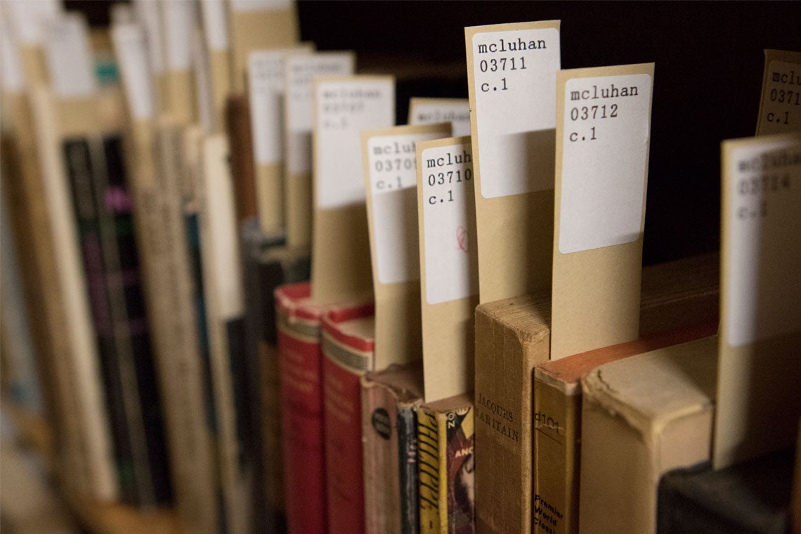 McLuhan’s book collection at U of T is as diverse as it is large, with subject matter ranging from media studies to English literature, Catholicism and philosophy.