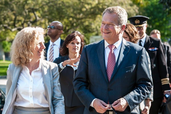 Niinistö, along with his wife Jenni Haukio, visited U of T on October 10, participating in a conversation on international affairs with Munk School Director Janice Stein, as well as a panel discussion on the future of Finnish studies in North America.