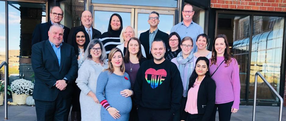 IPPC co-chairs Amy Lamb (front left) and Jaris Swidrovich (front right) met with other pharmacy representatives and leaders to introduce the organization and discuss Indigenous representation in the profession (photo supplied)
