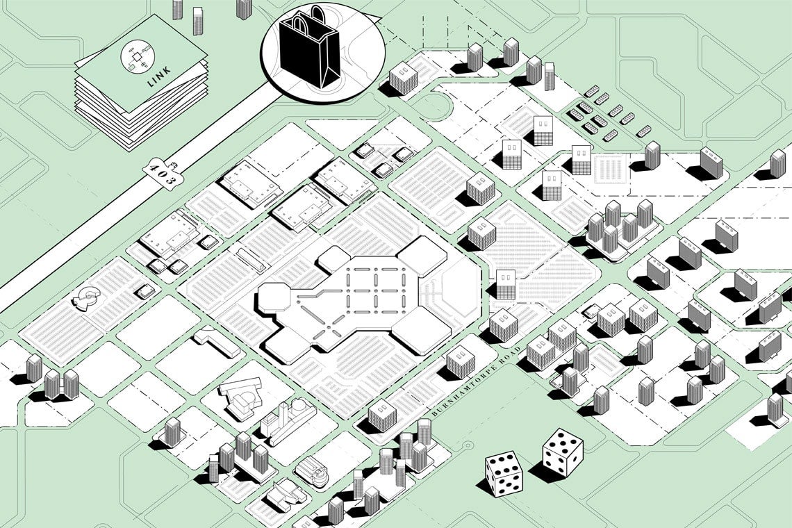 Players will have to build around mall sites, using game pieces like condos, civic centres, big box complexes and townhouses – rather than Monopoly’s houses and hotels.