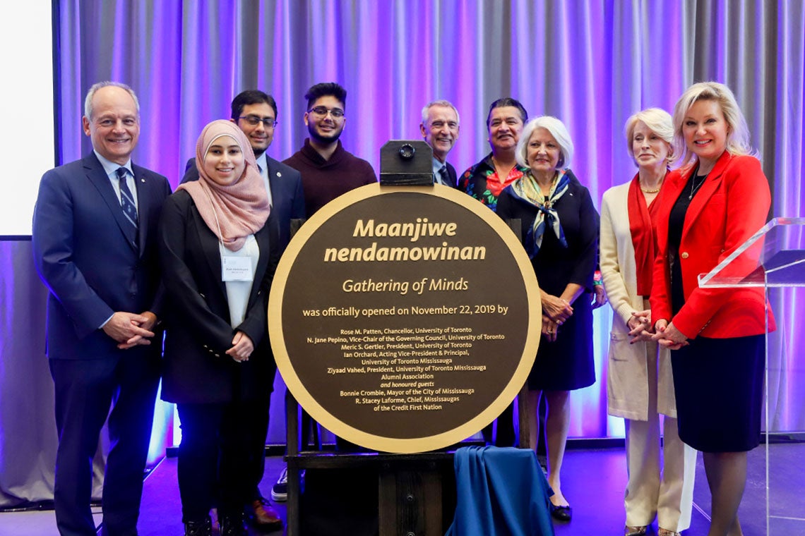 “We are pleased we could acknowledge the Mississaugas of the Credit First Nation with the naming of this building and demonstrate our commitment to engaging with Indigenous communities as we work together to lead the process of reconciliation,” U of T president Meric Gertler said at a ceremony attended by Misssissauga Mayor Bonnie Crombie and Chief R. Stacey Laforme of the Mississaugas of the Credit First Nation.