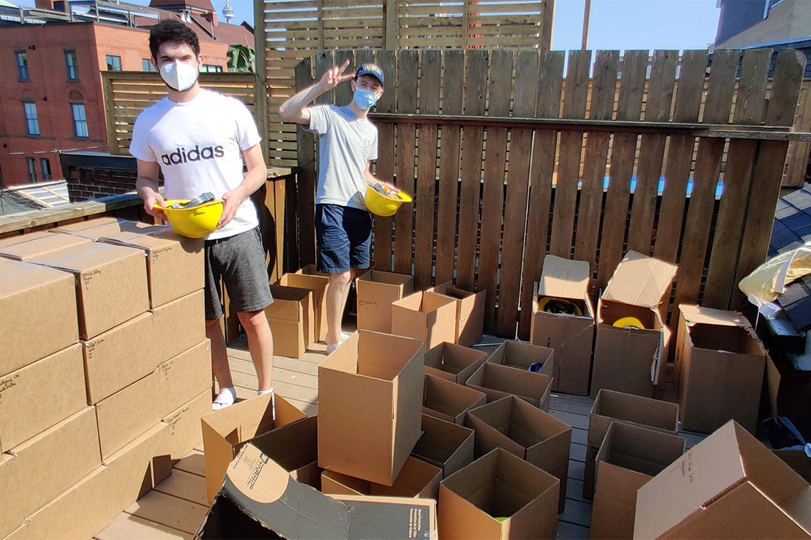 At the Faculty of Applied Science & Engineering, students who are participating in orientation can expect a package in the mail containing a first-year starter kit, including a hard hat, sew-on patches, copies of the engineering campus newspapers and purple face paint.