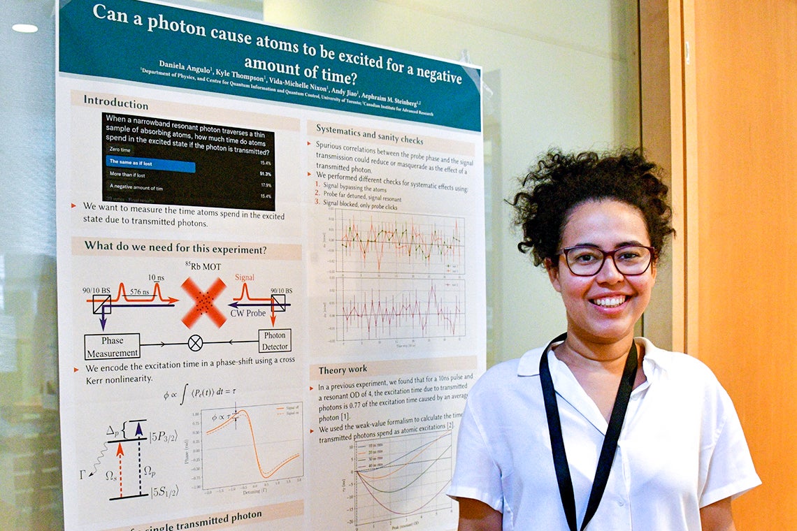 Daniela Angulo Murcillo, a graduate student in the quantum optics group in U of T’s department of physics, presented a poster, “Measuring the Atomic Excitation Time due to Narrowband Resonant Photons that are Transmitted,” that described work she and her collaborators are conducting under the supervision of Steinberg.