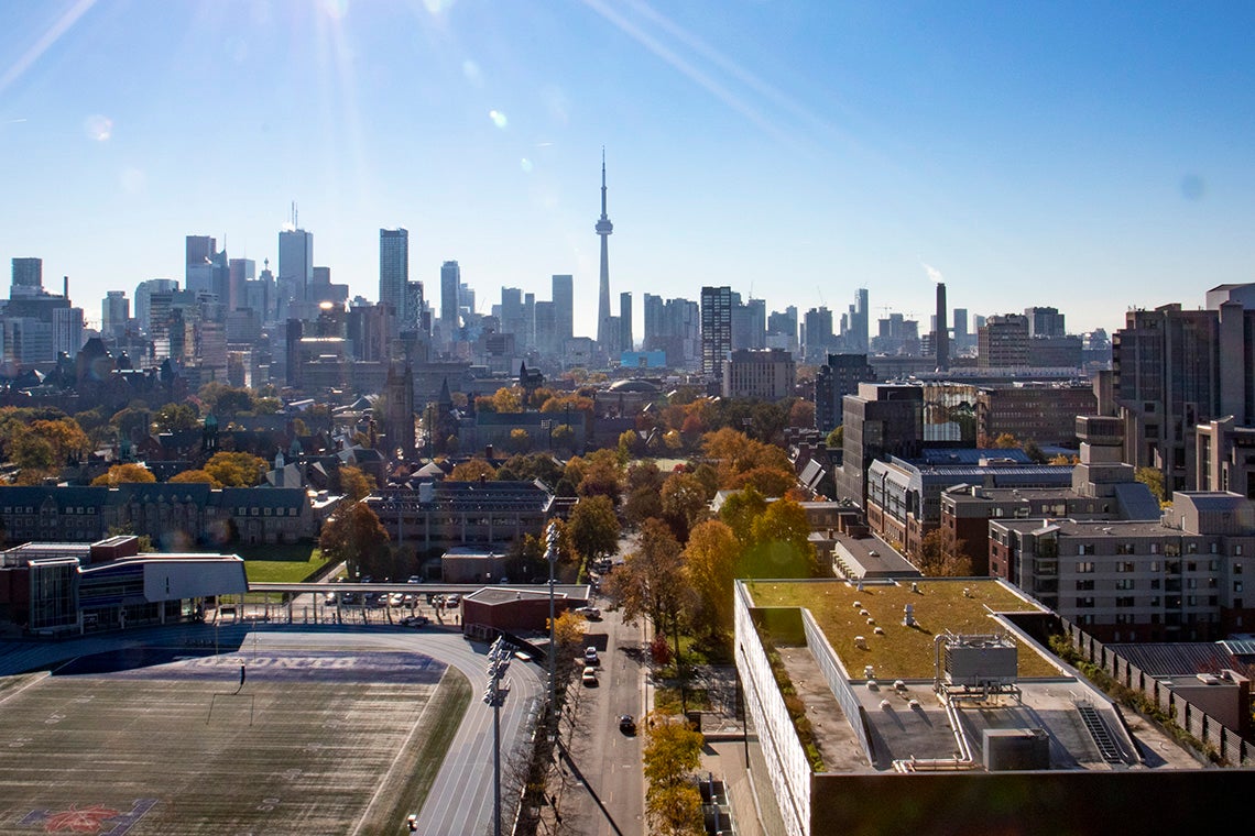 “Outside my office window, we’ve dug up our historic campus to install Canada’s largest urban ground source heat pump system,” he said, referring to a massive geoexchange system that’s being built on the St. George campus as part of the Landmark Project.
