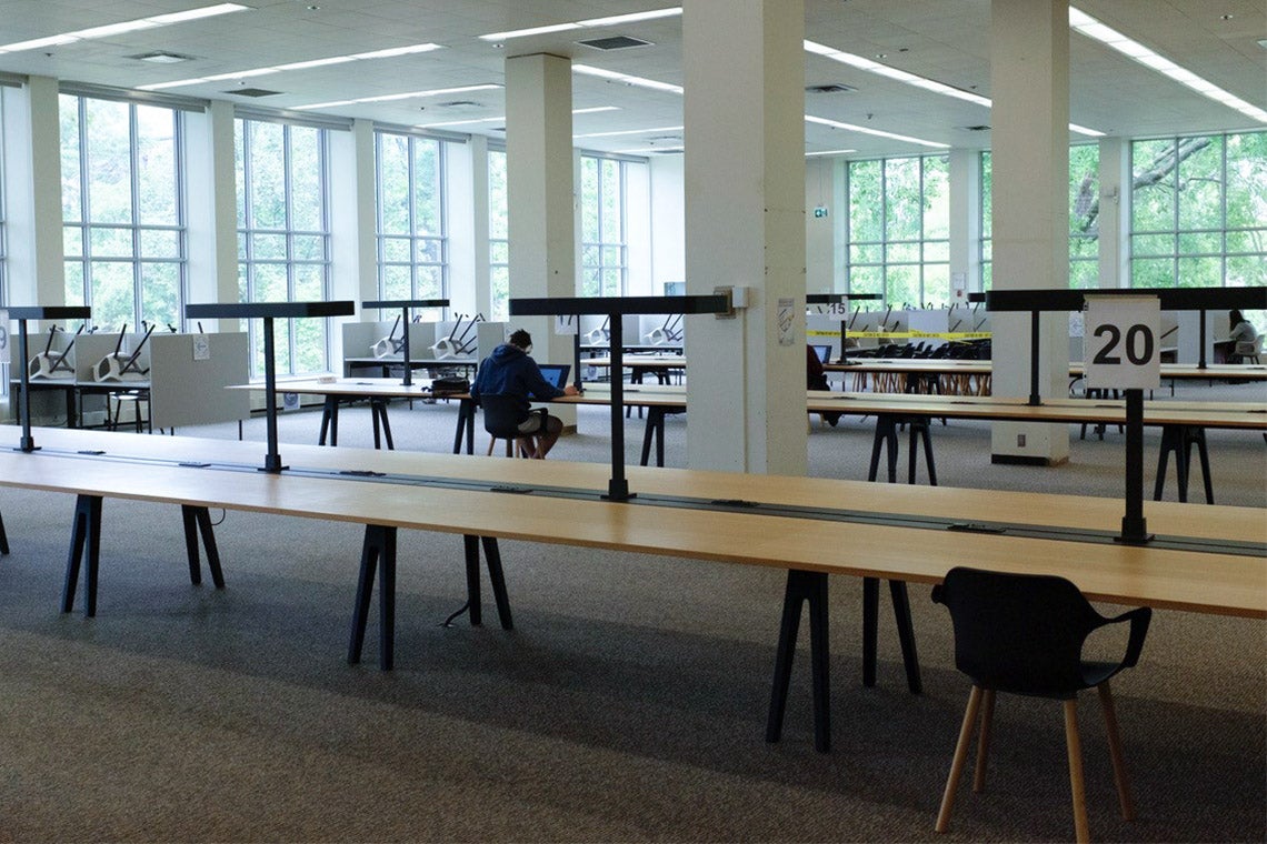 At U of T Mississauga, the library’s main floor will reopen and computers, Wi-Fi and printers will be available for use. Library staff may open the third floor for study use if there’s a need for more space.