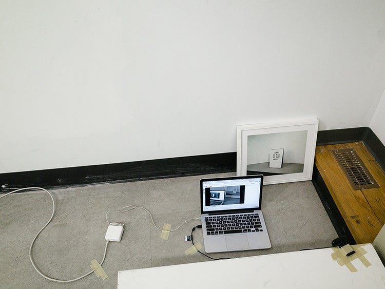 Aisha Ali, Atanas Bozdarov, Craig Rodmore, Florence Yee, Alternate Forms of Delivery, 2020. Laptop, framed photograph, signage (image courtesy the artists)