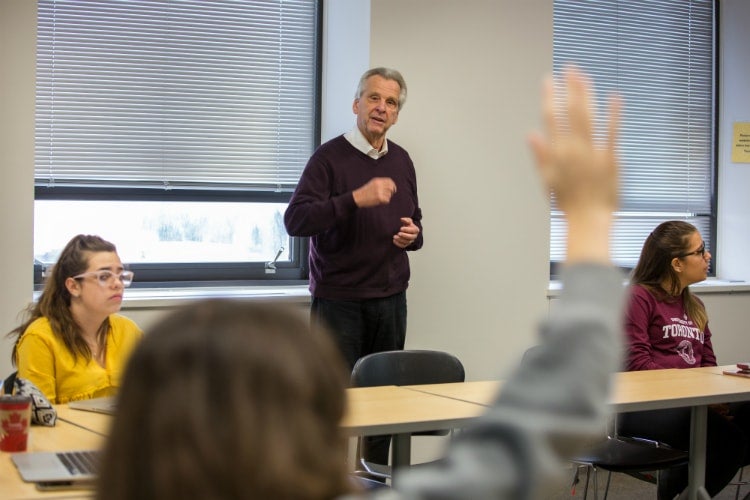 Professor Ronald Pruessen, former chair of the history department and a Pulitzer Prize-nominated author, teaches a class called “Barack Obama as History – Barack Obama in History” (photo by Johnny Guatto)