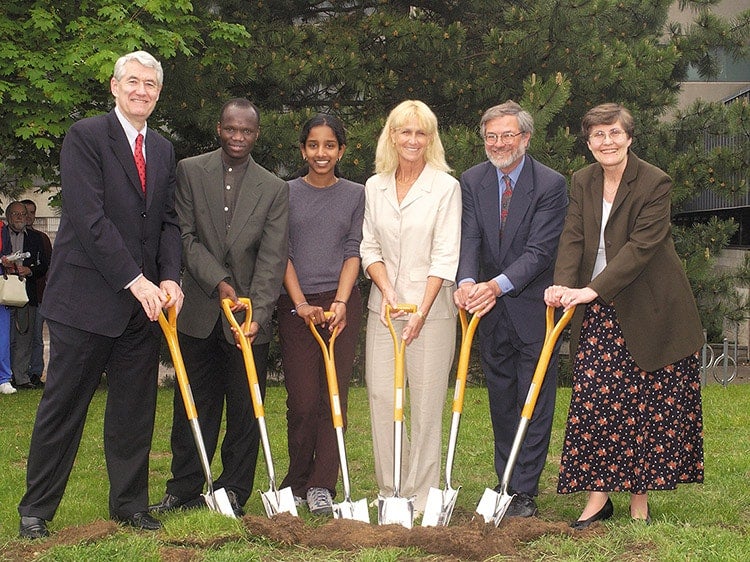 Helen Rosenthal (third from right) takes part in a groundbreaking ceremony for U of T Scarborough's Academic Resource Centre in June, 2002 (photo by Ken Jones)