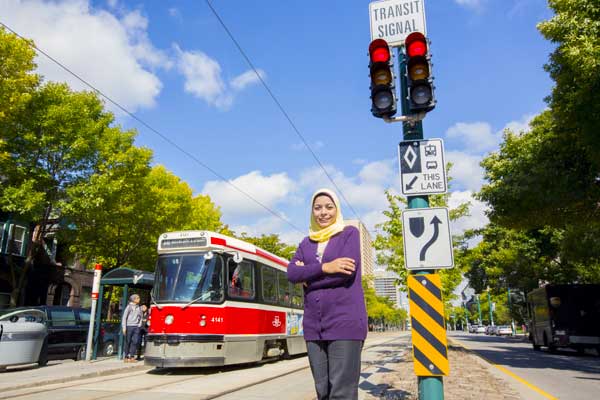 And more recently there’s Samah El-Tantawy, who came to U of T from Egypt and completed her PhD in civil engineering in 2012. She also developed MARLIN, an artificial-intelligence-based traffic light system that attracted wide media attention. The technology, which uses machine learning to help traffic lights self-optimize, improves the flow of traffic and reduces maintenance and infrastructure operating costs.