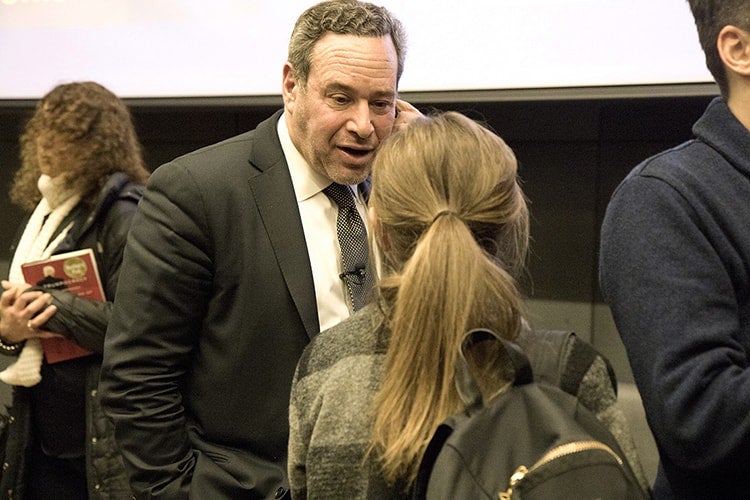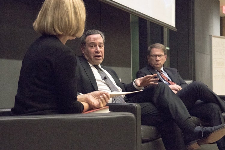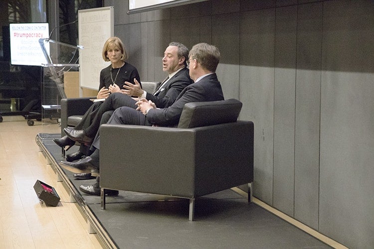 Known for his role in creating the phrase “axis of evil,” Frum appeared at the Jan. 24 event to talk about his newly released book, Trumpocracy: The Corruption of the American Republic. The hour-long discussion, organized by Rotman's Martin Prosperity Institute, The Atlantic magazine and Indigo Books, featured Jeffrey Goldberg, editor-in-chief of The Atlantic, and Heather Reisman, founder and CEO of Indigo Books & Music, who moderated the discussion.