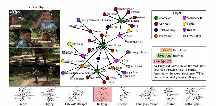 “So if you search by using a graph that says Forrest Gump is arguing with someone else, and that the emotions of the characters are sad and angry, then you can find the clip,” he says.