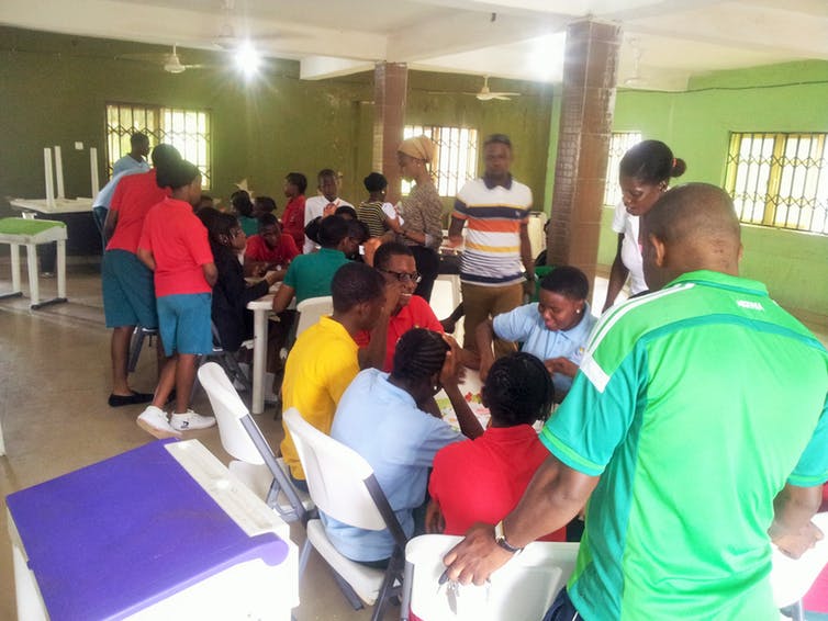 Grade 11 and Grade 12 students in Abuja, Nigeria, play the Nutrido game (photo courtesy of Obidimma Ezezika)