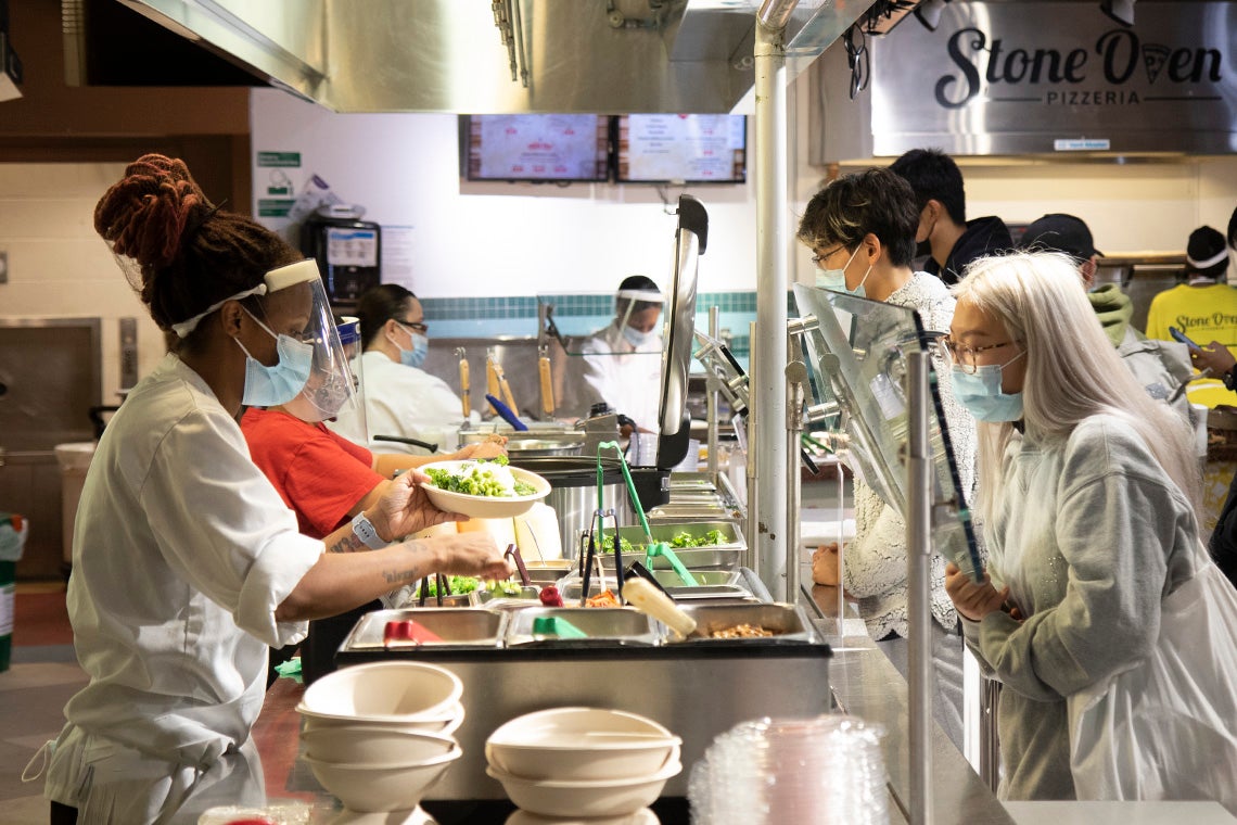 For those who chose to eat-in, a green screen in UCheck is required and physical distancing measures are in place.
