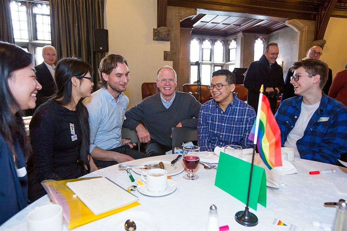Rayside’s activism continued at U of T. He helped form an early 1990s committee on homophobia. In the mid-90s, he and Rona Abramovitch, the then status of women officer at U of T, alongside a group of students, faculty and staff conceived of the Positive Space initiative.