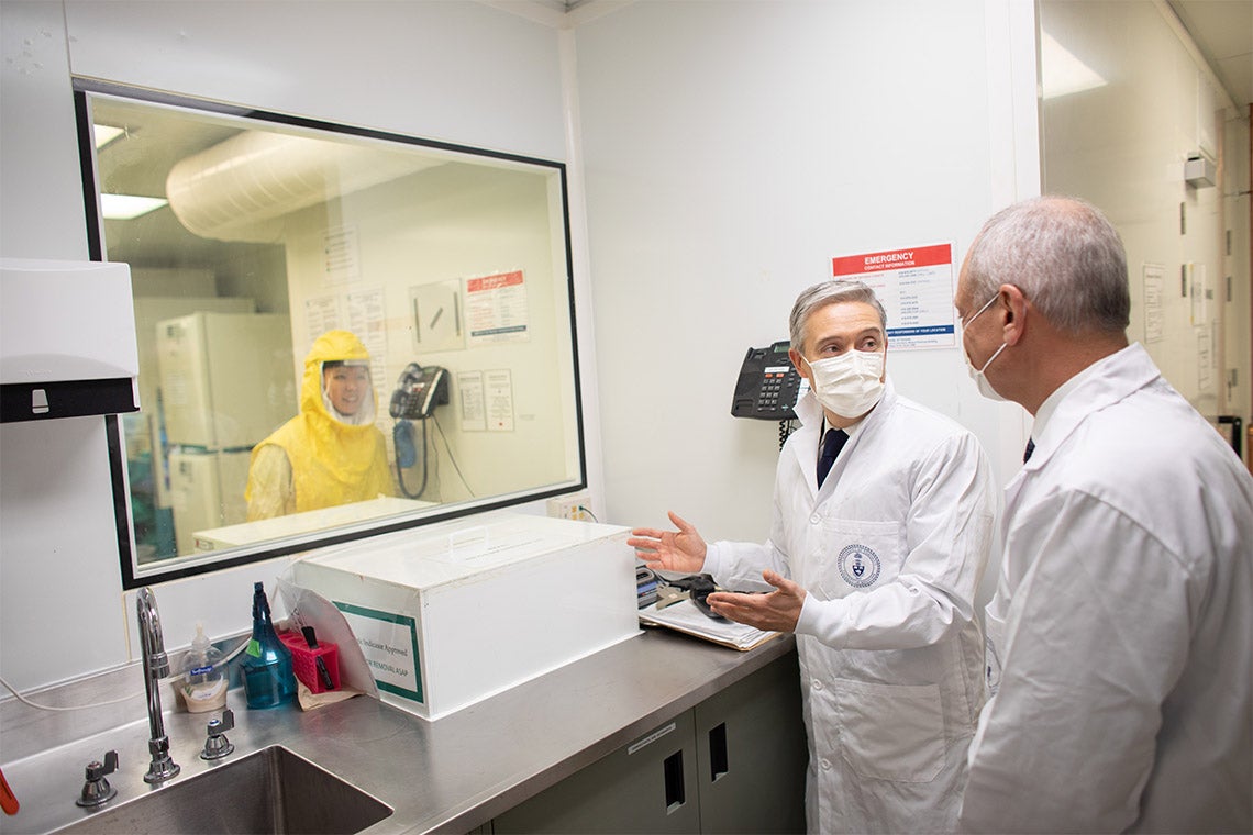 Gray-Owen described some of the research that was conducted during the pandemic – including studies to understand SARS-CoV-2 transmission, development of diagnostics and therapeutics, and validation of virus deactivation methods to enable the reuse of masks and ventilators. He also outlined the need for expansion of research activities and space.