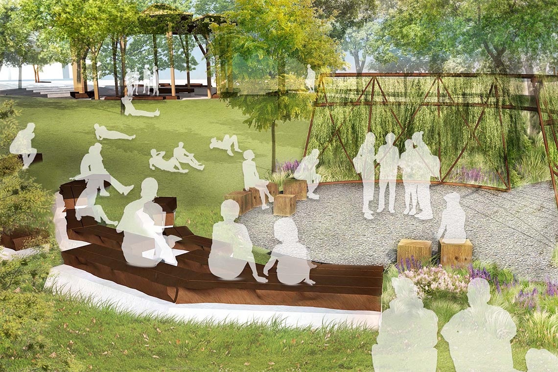 The plans call for a clearing and amphitheatre space that functions as an informal teaching and passive seating area (rendering by Brook McIlroy and Mat Winter)