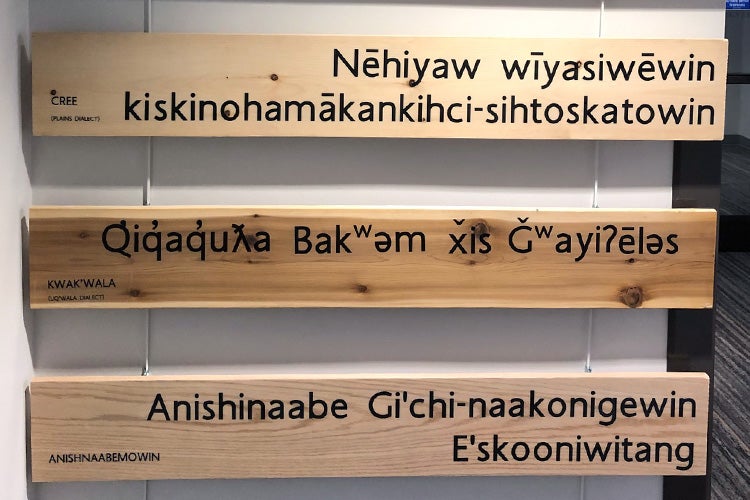 Indigenous Law Students Association language plaques (photo by Lucianna Ciccocioppo)