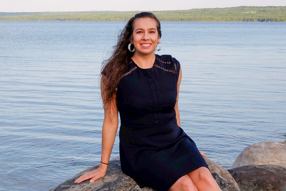 Shanna Peltier, pictured here on Wikwemikong Unceded Territory, earned a master's degree in school and clinical child psychology from OISE and is currently pursuing her PhD (photo by Naomi Peltier Photography)