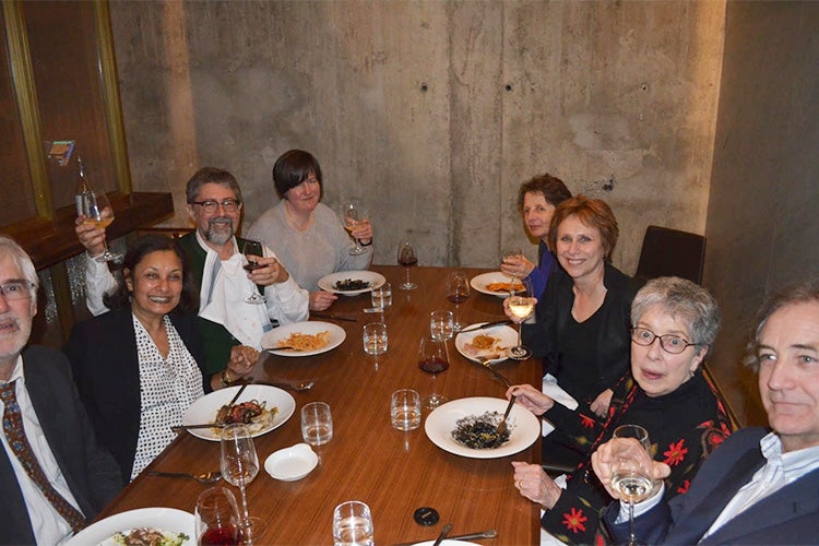 A group of international Walter Scott scholars met for dinner in Toronto in 2015 to celebrate Millgate's work. Millgate is second from right (photo courtesy of Tara Wallace)
