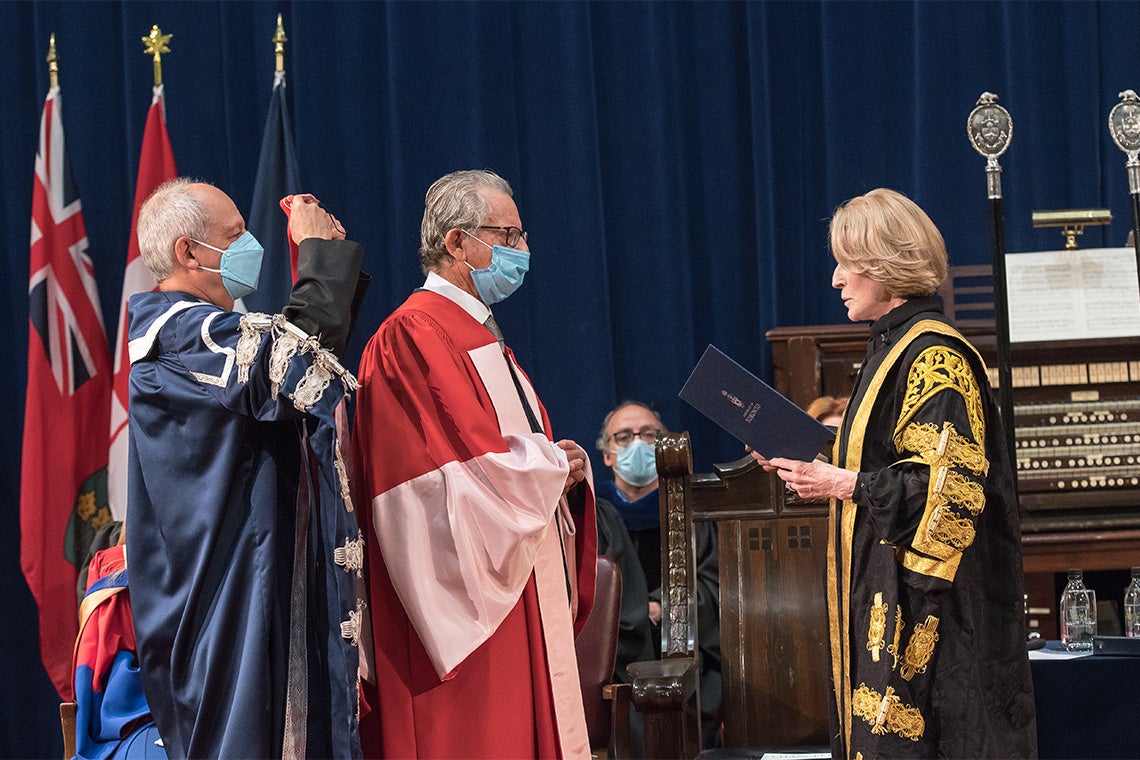 Today, for his outstanding service to the community, and for his leadership in the field of security and investment sector globally, Gluskin receives a Doctor of Laws, honoris causa, from the University of Toronto.