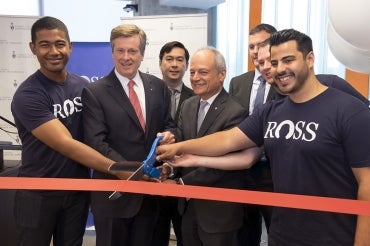 That journey led ROSS to Silicon Valley and now back to Toronto with the official launch of ROSS North, an AI-focused research and development lab. Arruda and fellow co-founders Jimoh Ovbiagele and Pargles Dall’Oglio shared the stage Monday with Toronto Mayor John Tory and U of T President Meric Gertler for the official ribbon-cutting cermony.