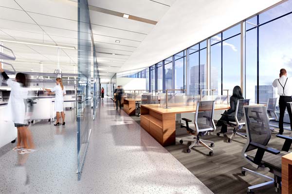 While about three-quarters of the JLABS floor will be dedicated to laboratories, digital equipment and bench tops, there will collaborative and meeting spaces to encourage interaction with industry mentors and potential investors.