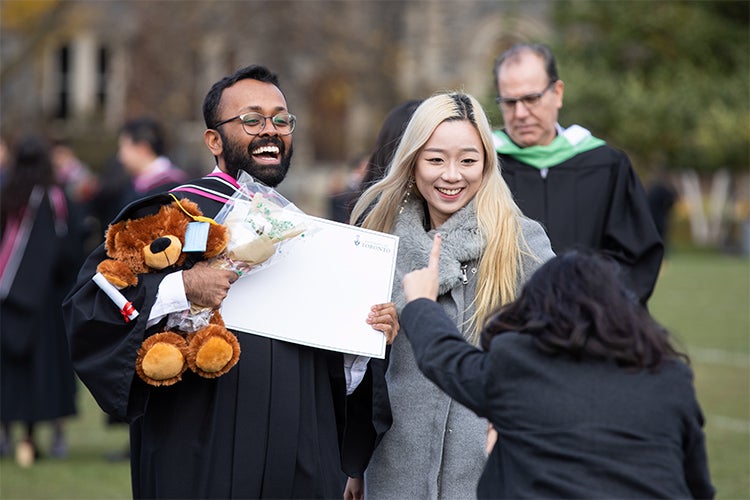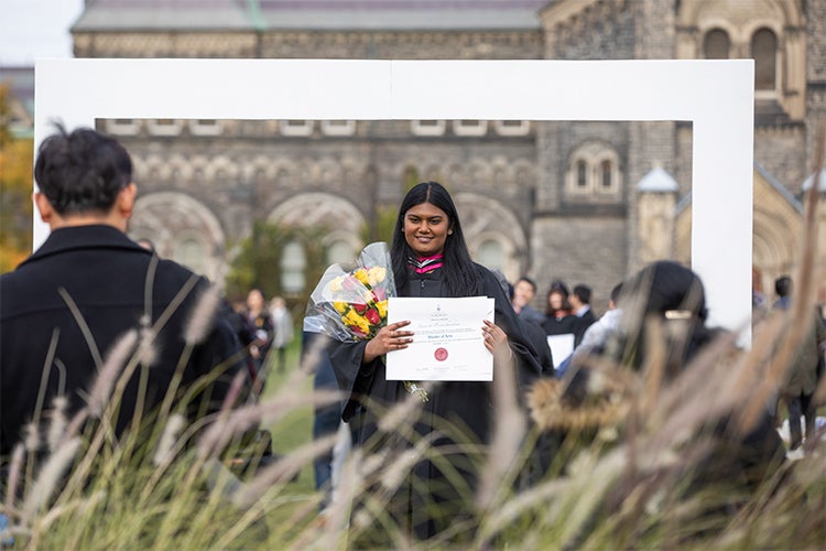 Many graduating students posed for a memorable photo inside a giant frame set up on Front Campus, with a picturesque view of University College as a backdrop.