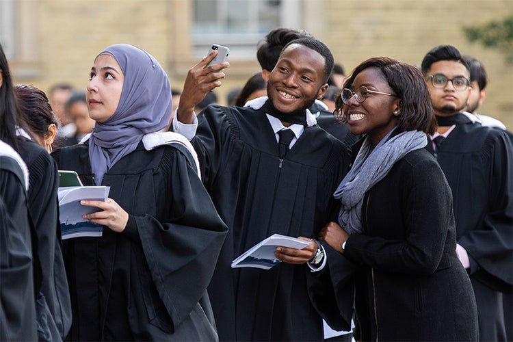 No filter needed: A graduating student takes a quick selfie before entering Convocation Hall.