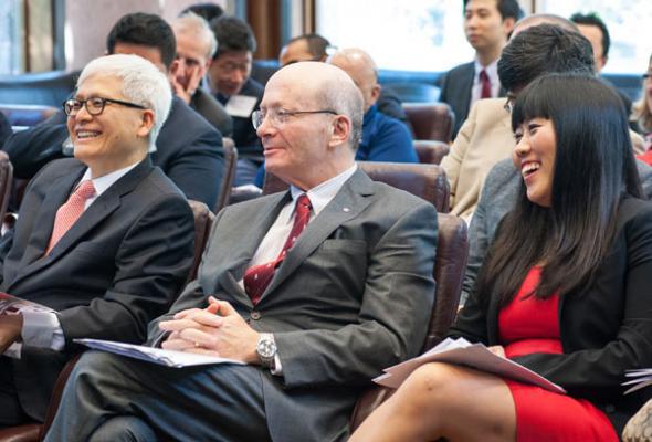 Park said the conference was largely inspired by her doctoral dissertation, which examines a century of Canadian-Korean relations starting with Canadian missionaries sent from U of T in 1888. “As an international student from South Korea who grew up in Canada – I did both my undergrad and PhD at U of T – I find it fascinating how our relationship evolved so quickly from a handful of missionaries to such an active one today.” She said she worked closely with Massey College Master Hugh Segal on the conference.