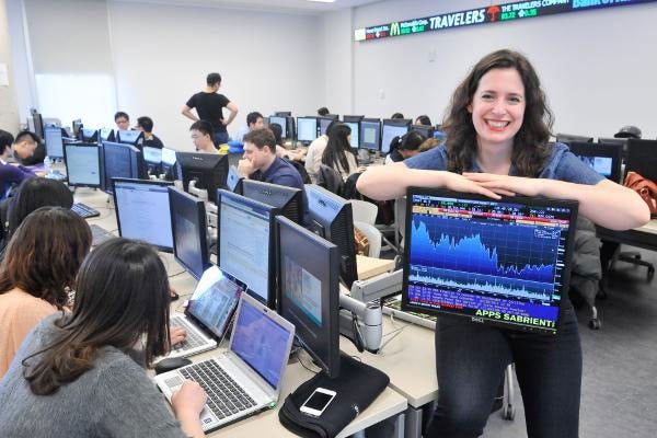 Students take finance courses in the lab, and also use the facility to complete assignments. Other software allows professors to run simulations that can compress six months of trading data into a 10-minute session, simulating the pressure of the fast-paced world of trading.