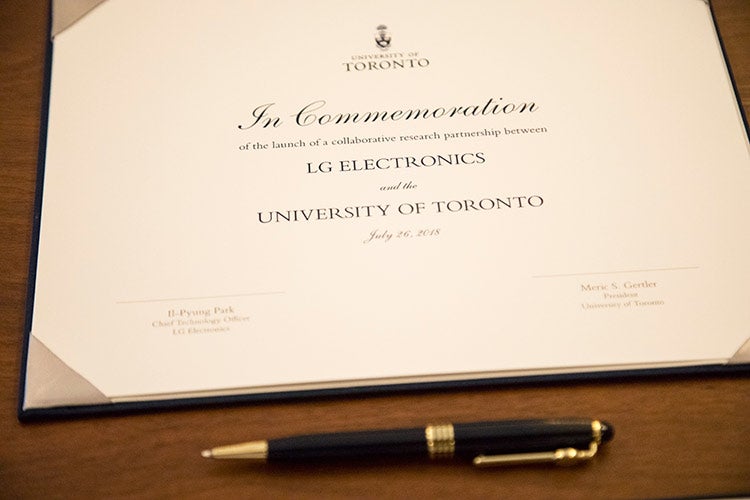 “LG’s products and services are experienced by people all around the world today, but they still haven’t experienced the full potential of artificial intelligence,” said I.P. Park, the president and chief technology officer of LG Electronics, during a recent signing ceremony at U of T's Simcoe Hall.