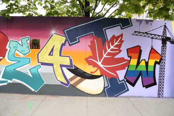 Stretching along the east side of St. George Street north of College Street, the project is the longest single graffiti installation in the City of Toronto and highlights some of the connections between the university and the city.