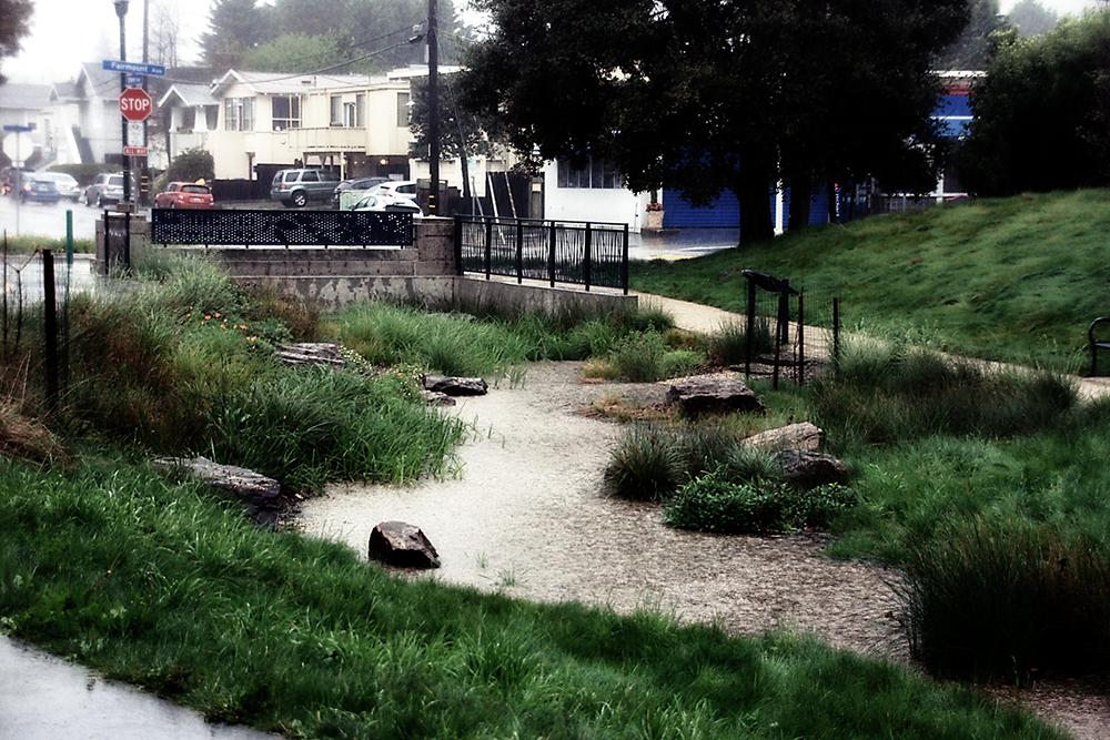 Bioswales are channels lined with vegetation that absorb and filter stormwater (photo by TJ Gehling/CC BY-NC-ND)