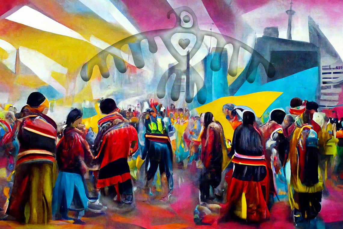 Visitors to the University of Toronto’s Hart House will be treated to a visually stunning piece of art this fall: “Intertribal, 2022,” a mixed media mural at the end of the eastern corridor on the lower level of the building.