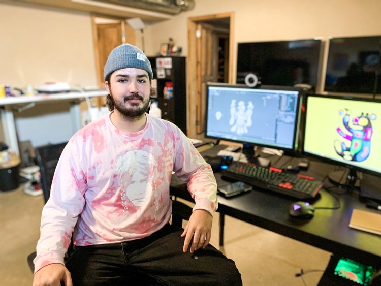 He takes inspiration from new, innovative technologies and, through his art, he connects this technology with the land and his roots as an Anishinaabe person. He also seeks to find new ways to visualize the spirit of the land and thereby reveal the many truths about humanity’s relationship with the land. Never afraid to experiment with new tools and mediums, Hopkins uses state-of-the-art techniques such as 3D modeling, digital drawing, editing, creative coding and machine learning.