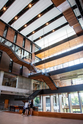 “I am pleased and honoured that UTM’s newest academic building will be known as Maanjiwe nendamowinan, meaning ‘gathering of minds’ in Anishinaabemowin,” said U of T Mississauga Acting Vice-President & Principal Amrita Daniere. “It captures, so perfectly, the spirit and purpose of this building, and reflects the land on which the campus operates and U of T’s ongoing response to the federal Truth and Reconciliation Commission.”