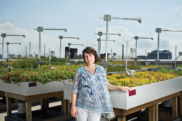 Margolis is the director of an ambitious project situated on the roof of the Daniels building, where she and a multi-disciplinary team of professors, students and representatives from industry have constructed 33 test beds designed to hit upon the ideal recipe for optimizing green roofs in Toronto. The group is testing four variables: soil content, soil depth, amount of irrigation and type of plant.