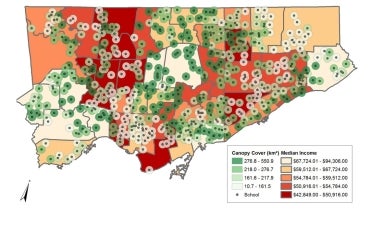 As a summer student and research assistant for the Toronto District School Board (TDSB), Marmureanu has access to plenty of data on the location of trees and parkland and its proximity to schools. The school board has shown interest in his research and has published papers of their own on the benefits of bringing vegetation closer to schools and teaching kids about the environment.
