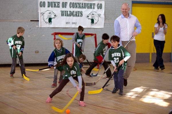 The visit to the Duke of Connaught Junior and Senior Public School was part of a campaign to help raise awareness about childhood obesity, a problem Sundin is fighting by working with the University of Toronto’s Fraser Mustard Institute for Human Development.