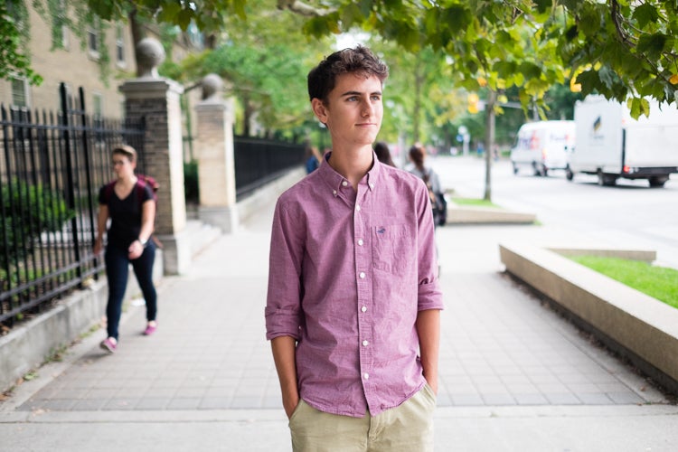 Markus Kunej, an engineering science student and Schulich Leader, on St. George Street (photo by Geoffrey Vendeville)