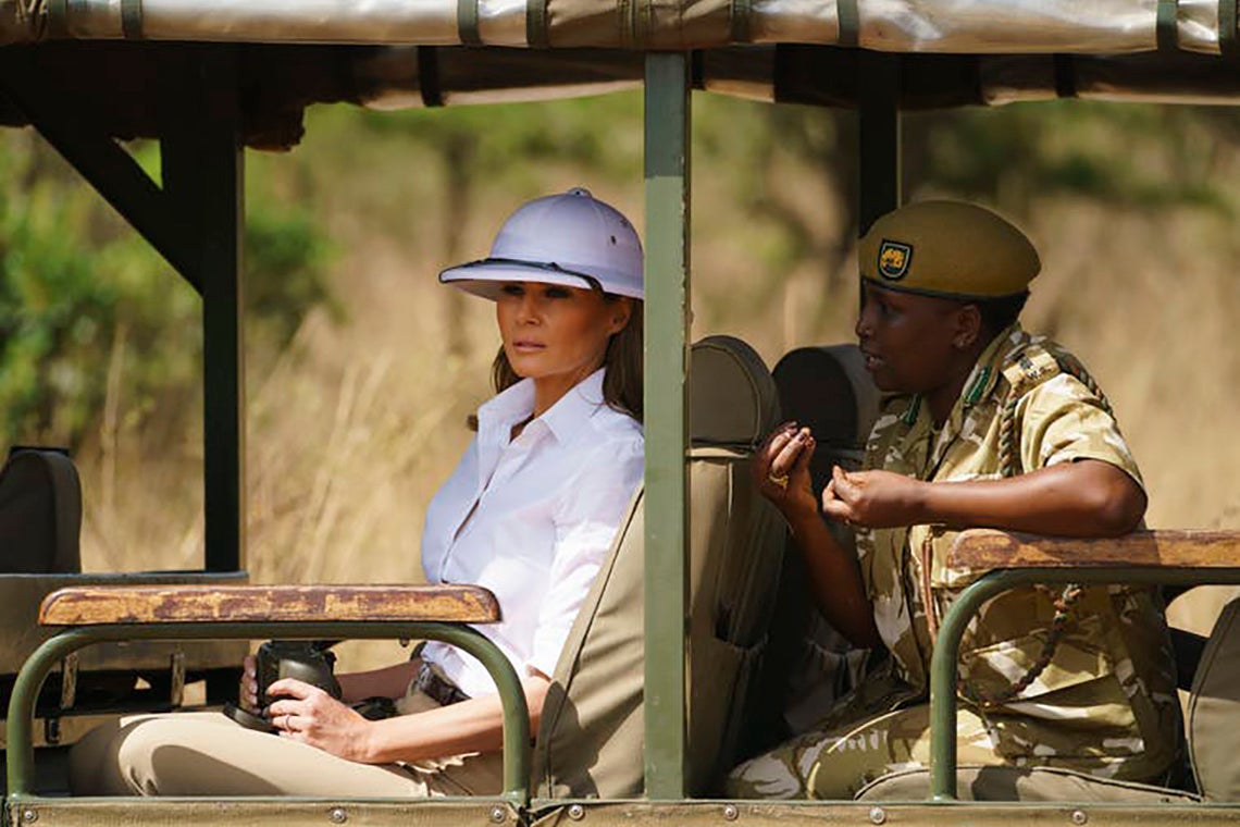 A Kenyan safari guide, in fact, told Town and Country that Melania’s pith helmet made them smile, adding “we haven’t seen that look in East Africa since Meryl Streep was filming Out of Africa 30 years ago!”