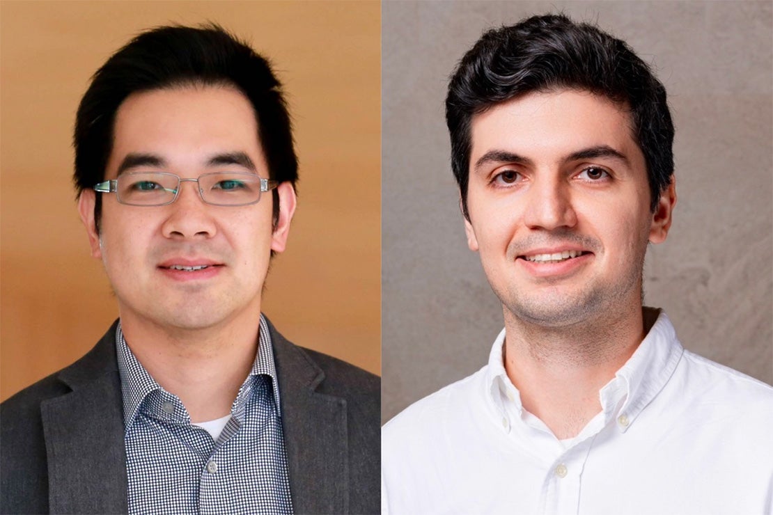 Associate Professor Edmond Young of U of T's Faculty of Applied Science & Engineering (left) and PhD alum Sina Kheiri co-developed the Recoverable-Spheroid-on-a-Chip with Unrestricted External Shape – or "ReSCUE" – platform (photos courtesy of Edmond Young and Sina Kheiri)