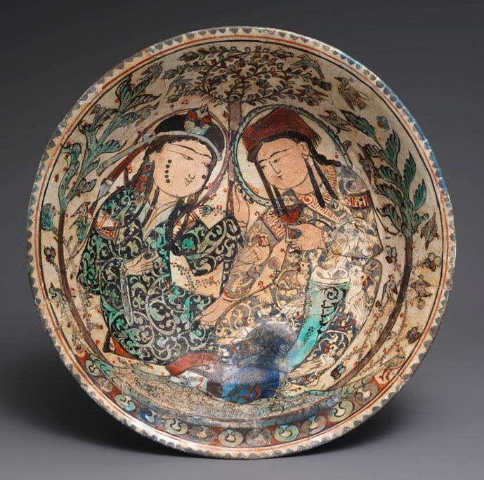 Mina’i bowl with couple in garden, ca. 1180–1220. Metropolitan Museum of Art, New York.