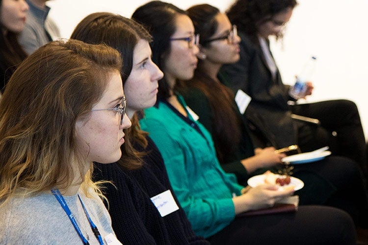 Attendees at the HealthEDGE launch event listen to presentations from U of T entrepreneurs (photo by Chris Sorensen)