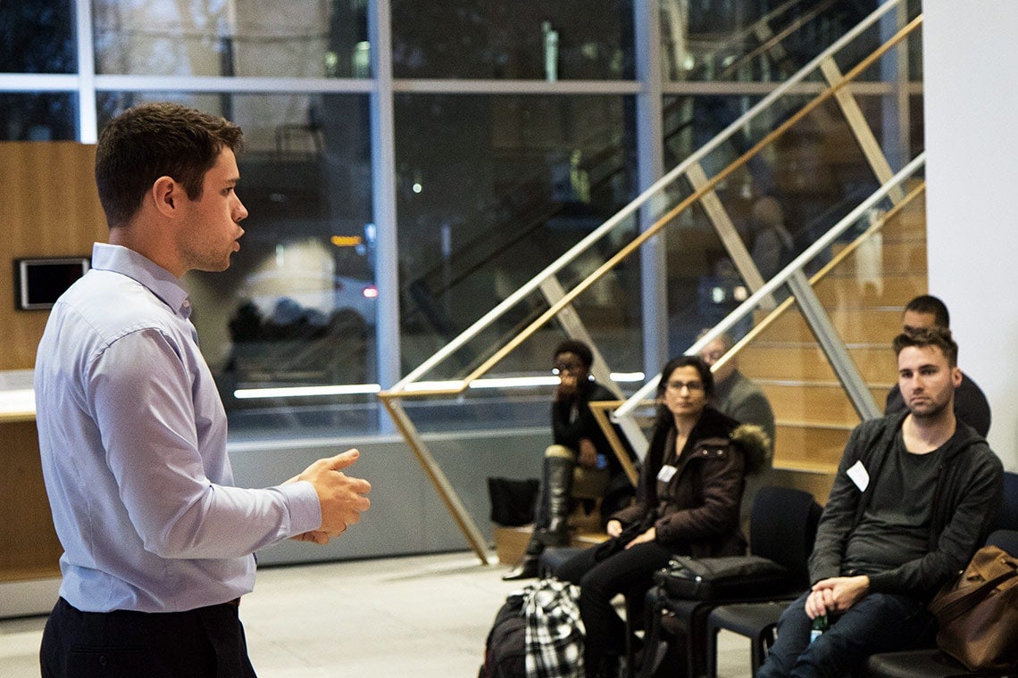 It was one of several words of wisdom dispensed by Brooks and fellow U of T entrepreneur Marek Pacal, who founded diabetes detection startup Optiggx, to nearly three dozen attendees at a Health Innovation Hub, or H2i, event this week. The event, held at Autodesk's offices in the MaRS Discovery District, served to kick off H2i’s HealthEDGE Initiative, which is designed to encourage the creation and prototyping of solutions that address real health-care challenges through workshops, mentorships and a pitch competition.