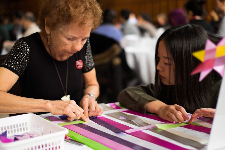 At one table, people used ribbons to make stars for the One Million Stars to End Violence community project. The stars will be shown at the Hart House Hub before they are shipped to Australia for the 2018 Gold Coast Commonwealth Games.