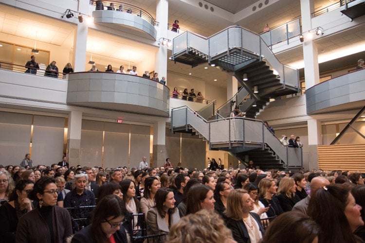 The audience filled Rotman's Fleck Auditorium and stood in hallways and stairwells to listen in on the discussion