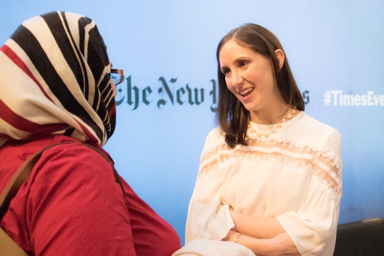 Jessica Bennett, the New York Times' new gender editor, speaks to students after the event