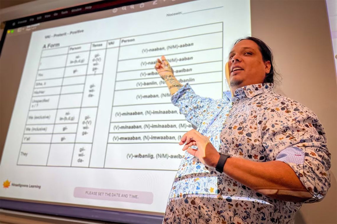 Ninaatig Staats Pangowish, an assistant professor at the Centre for Indigenous Studies, says he welcomes non-Indigenous learners into his classes because people of all backgrounds have a role to play in revitalizing Anishinaabemowin and other endangered Indigenous languages.